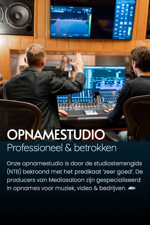 Hierdoor klinken opnames bij ons altijd professioneel, helder & ‘fase-rein’. Onze regel is: “Don’t fix it in the mix!”